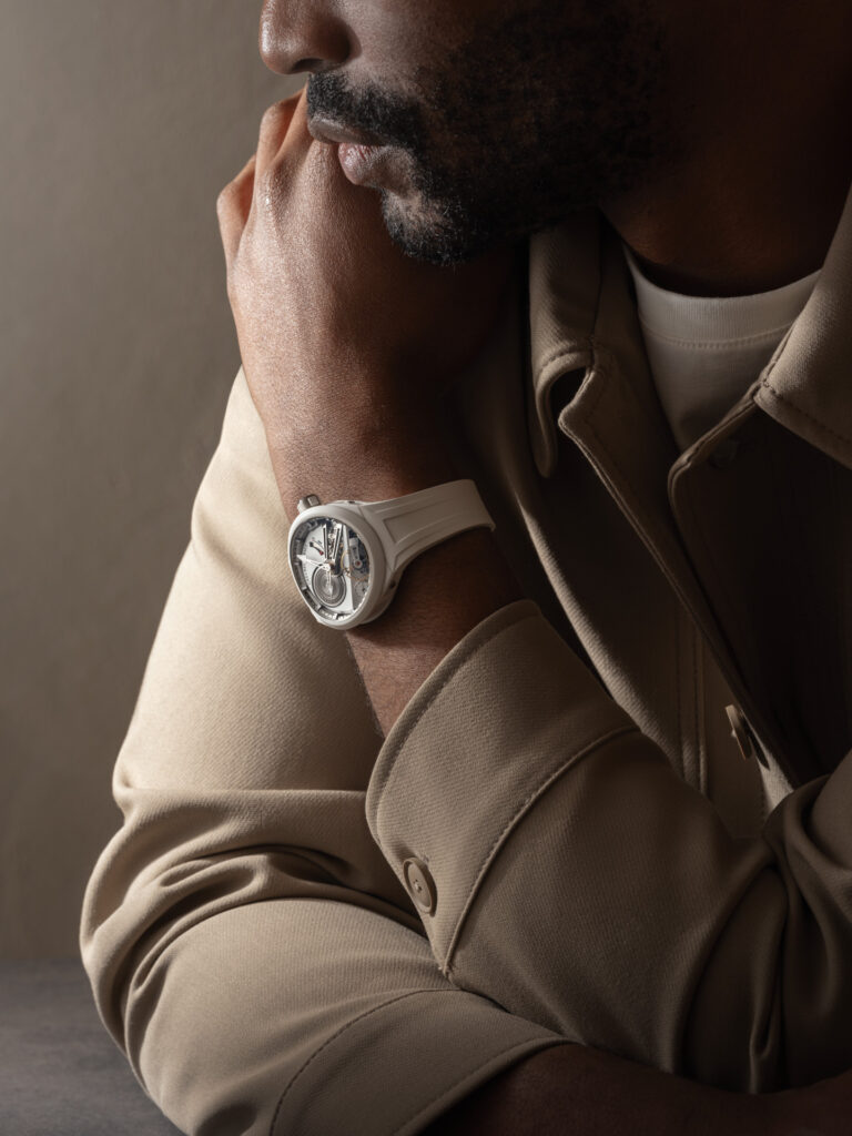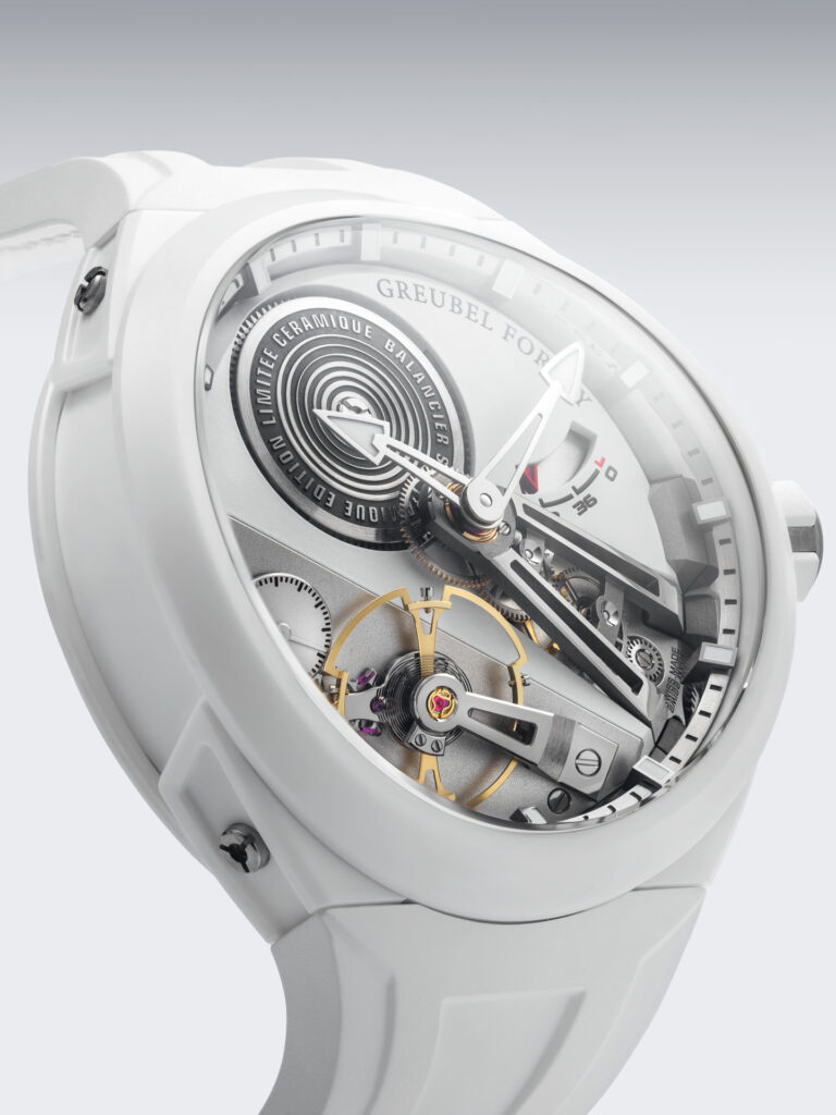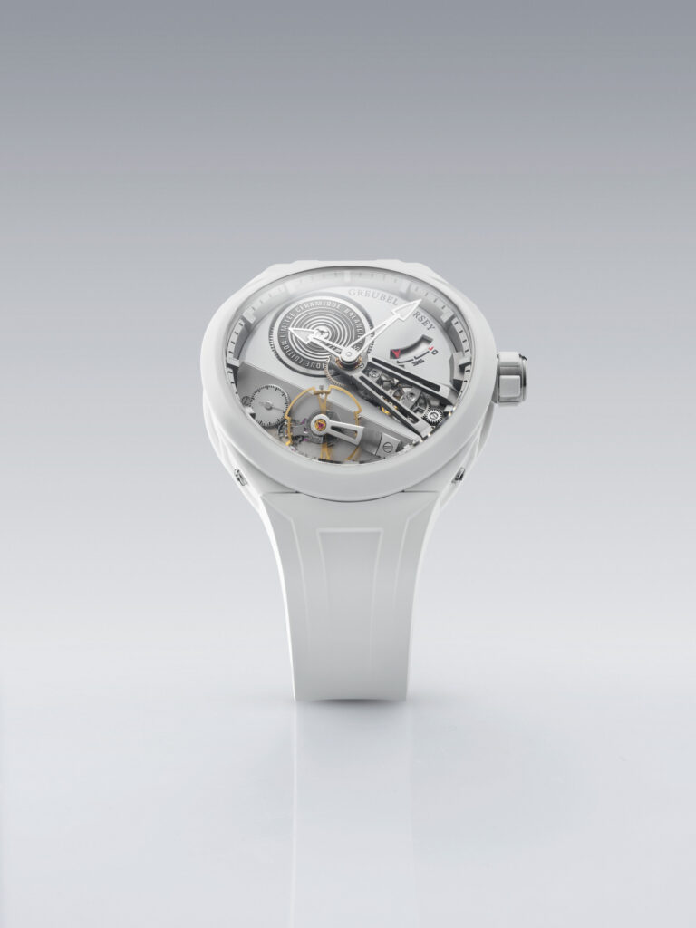 ความเอ็กซ์คลูซีฟสั่งลาในครั้งนี้ นำเสนอผ่าน 2 ดีไซน์สุดล้ำ ได้แก่ รุ่นตัวเรือนเซรามิกสีดำที่ล้อไปกับความหรูหราของชิ้นส่วนทอง 5N Red Gold และรุ่นตัวเรือนเซรามิกสีขาวคลีนตาสุดโดดเด่น โดยทั้งสองรุ่นยังคงเอกลักษณ์ตัวเรือนทรงโค้ง (Convexe) ขนาด 41.5 มิลลิเมตร ที่โอบรับกับข้อมือได้อย่างพอดี ภายใต้หน้าปัดเผยให้เห็นสถาปัตยกรรมขุมพลังกลไกไขลานที่โดดเด่นด้วย Balance Wheel (จักรกรอก) วางเอียงทำมุม 30 องศา ซึ่งเป็นซิกเนเจอร์ความซับซ้อนทางวิศวกรรมที่นักสะสมสายลึกต่างหลงใหล