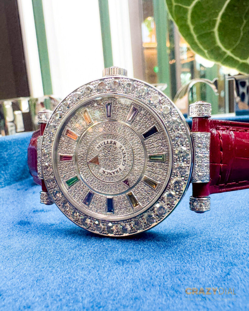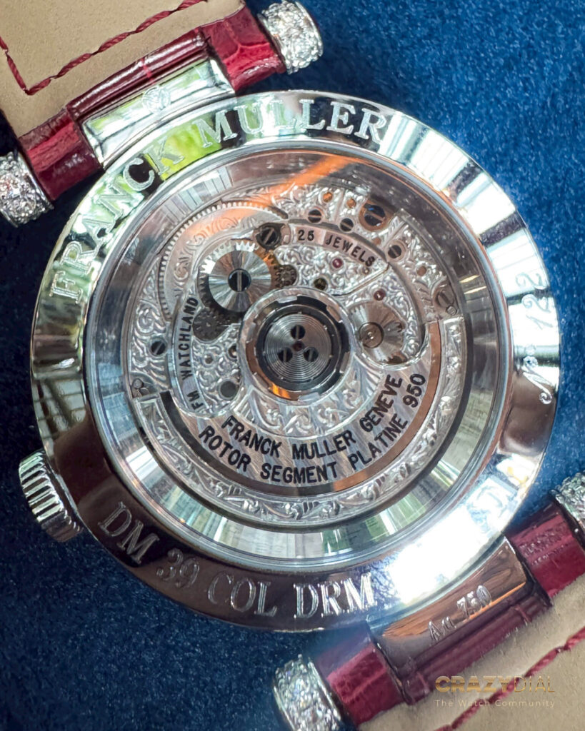 Double Mystery ที่ต่อยอดด้วยสองจานหมุนสำหรับชั่วโมงและนาที การหมุนของแต่ละจานเนียนขึ้น ลื่นขึ้น และให้ฟีลเหมือนศิลปะเคลื่อนไหวบนหน้าปัดมากกว่าแค่นาฬิกา ความรู้สึกตอนถืออยู่ในมือคือ “อันนี้เริ่มเป็น Franck Muller ยุคเฟื่องฟูแล้ว” ทั้งงานดีไซน์และองค์ประกอบหน้าปัดที่ซับซ้อนขึ้นมาก