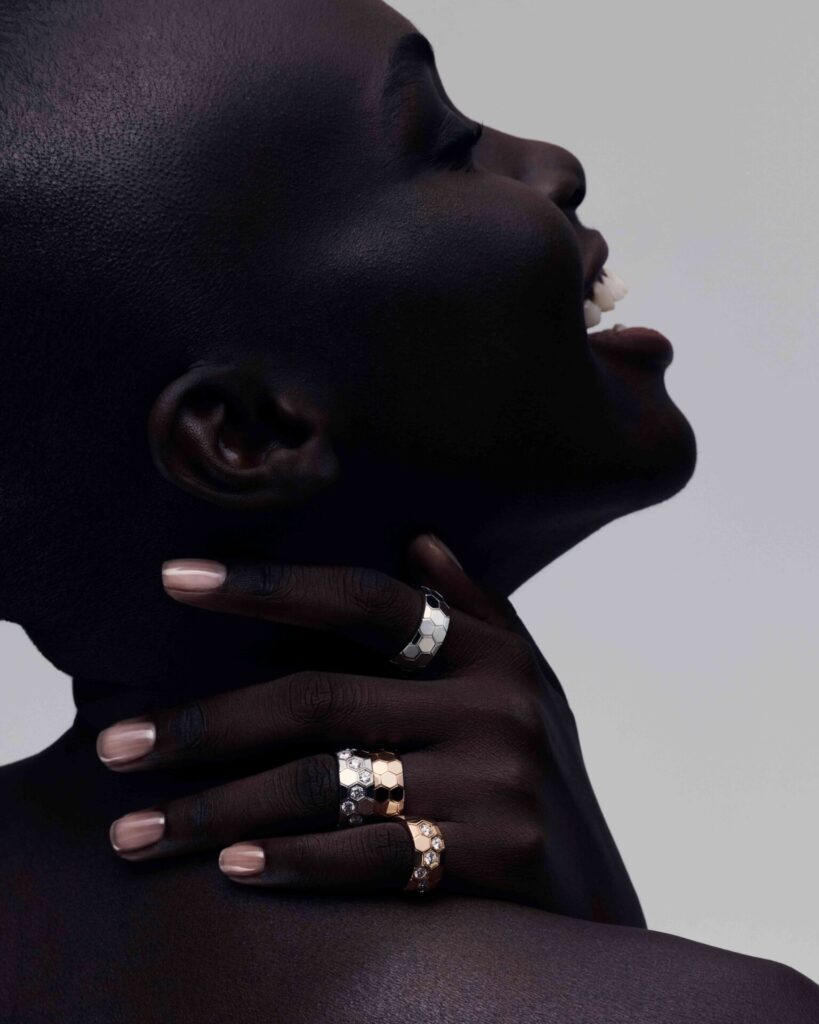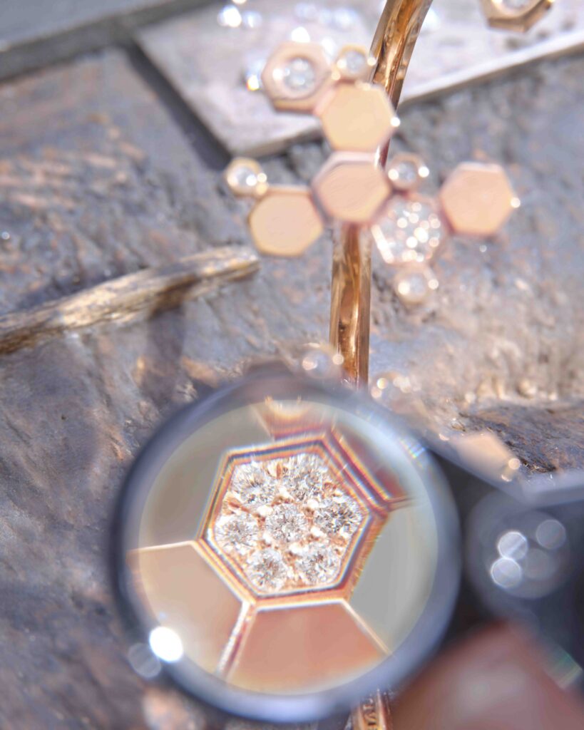 ผลงานในปีนี้นำเสนอรูปแบบที่เหนือความคาดหมาย พร้อมถ่ายทอดจิตวิญญาณแห่งความร่วมสมัย ผ่านต่างหู จี้สร้อยคอ กำไล และแหวน ซึ่งผสานเฉดทองหลากหลายโทนเข้ากับดีไซน์อันเป็นเอกลักษณ์ ไม่ว่าจะเป็นรูปผึ้งและรวงผึ้ง จึงสามารถสวมใส่ได้อย่างอิสระในหลายสไตล์ เปิดโอกาสให้ผู้สวมใส่เปล่งประกายในแบบของตนเองและแสดงตัวตนได้อย่างชัดเจน โดยมีคุณค่าแห่งความล้ำค่าเป็นหัวใจสำคัญ