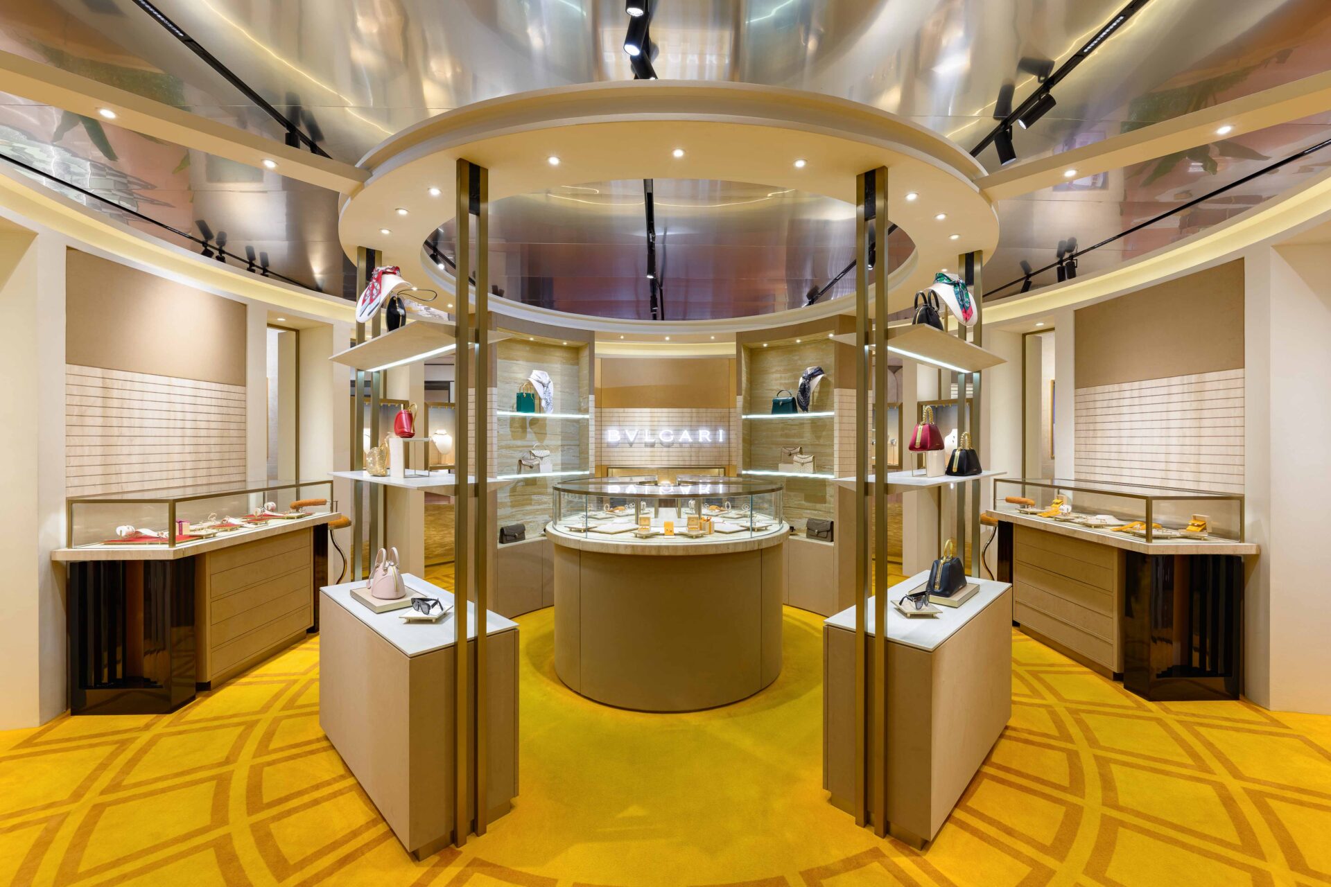 ป๊อป-อัพสโตร์ครั้งนี้มาในโครงสร้างทรงกลม ได้แรงบันดาลใจจาก Il Caffè ภายใน Bvlgari Hotel Roma เน้นบรรยากาศโปร่ง โล่ง ผ่อนคลาย พร้อมพื้นที่เลาจ์สำหรับต้อนรับแขกอย่างเป็นส่วนตัว รายล้อมด้วยพืชพรรณสีเขียวและองค์ประกอบดีไซน์ที่สะท้อนอัตลักษณ์โรมันของเมซง