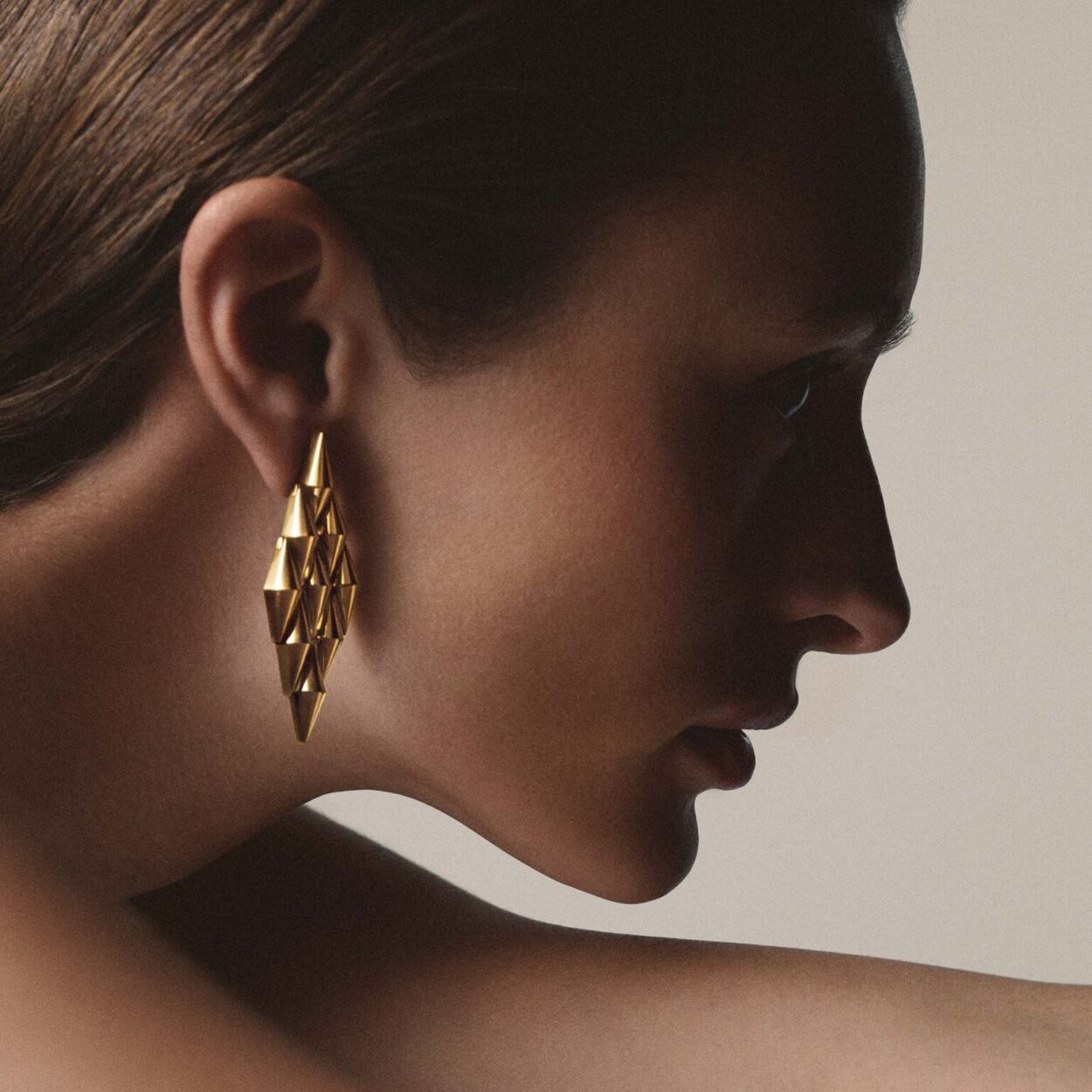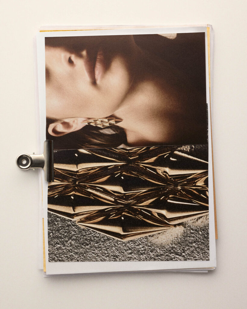 ต่างหูสะท้อนแนวคิดเรื่องมิติและการเคลื่อนไหว ทั้งแบบห้อยยาวที่เน้นเส้นสายแนวตั้ง และ ear-cuff ที่ถ่ายทอดจิตวิญญาณกล้าทดลองของ Vimini ได้อย่างชัดเจน