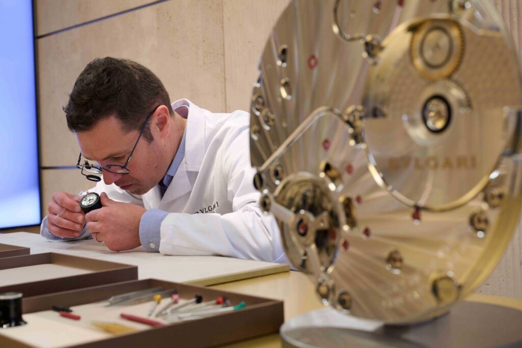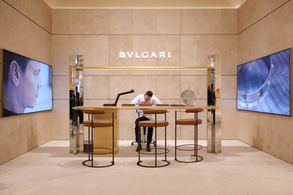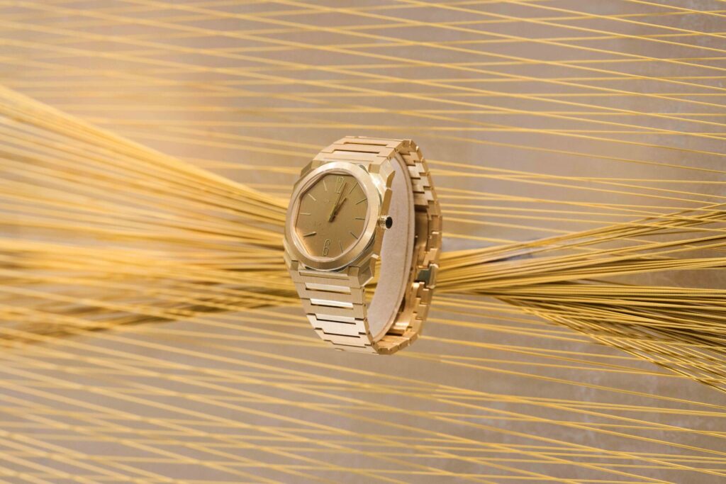 ทางฝั่งสุภาพสตรี Bvlgari ก็ส่ง Serpenti Studs มาประชันความงาม โดยเป็นการนำเอาดีไซน์กำไลข้อมือ “Tubogas” มาตีความใหม่ในวัสดุ Gold and Steel ตัวเรือนสตีลขนาด 35 มม. ตัดกับขอบตัวเรือนเยลโลว์โกลด์ที่ประดับเพชร 38 เม็ด หน้าปัดทำจากหินมาลาไคต์ (Malachite) สีเขียวมรกตที่ดูมีพลังและน่าค้นหา นอกจากนี้ยังมีเรือนเวลาชั้นสูงอย่าง Serpenti Aeterna ที่ประดับเพชรและแซฟไฟร์แบบจัดเต็ม เป็นงานศิลปะที่สวมใส่ได้จริงและสะท้อนความหรูหราแบบอิตาเลียนขนานแท้