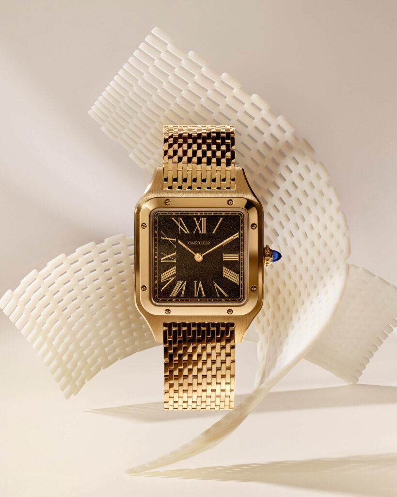 เริ่มกันที่รุ่นคลาสสิกที่ถูกนำมาตีความใหม่ได้อย่างน่าหลงใหล อย่าง Santos-Dumont มรดกแห่งนวัตกรรมที่รอบนี้มาพร้อมหน้าปัดหินออบซิเดียนเคลือบทอง จับคู่กับสายข้อมือโลหะแบบตาข่ายที่ให้ลุควินเทจแต่แฝงความเนี๊ยบหรู ถัดมาคือการสั่นสะเทือนวงการกับการกลับมาของ Roadster เรือนเวลาที่ได้แรงบันดาลใจจากโลกยานยนต์ ซึ่งหวนคืนสังเวียนพร้อมเส้นสายที่เพรียวบางและเฉียบคมสปอร์ตยิ่งกว่าเดิม ส่วนใครที่ชอบงานสถาปัตยกรรมต้องเทใจให้ Baignoire ที่เพิ่มกิมมิคความเท่ด้วยลวดลายหมุด Clou de Paris ช่วยขับเน้นมิติของตัวเรือนให้ดูมีเสน่ห์และสะดุดตามากยิ่งขึ้น