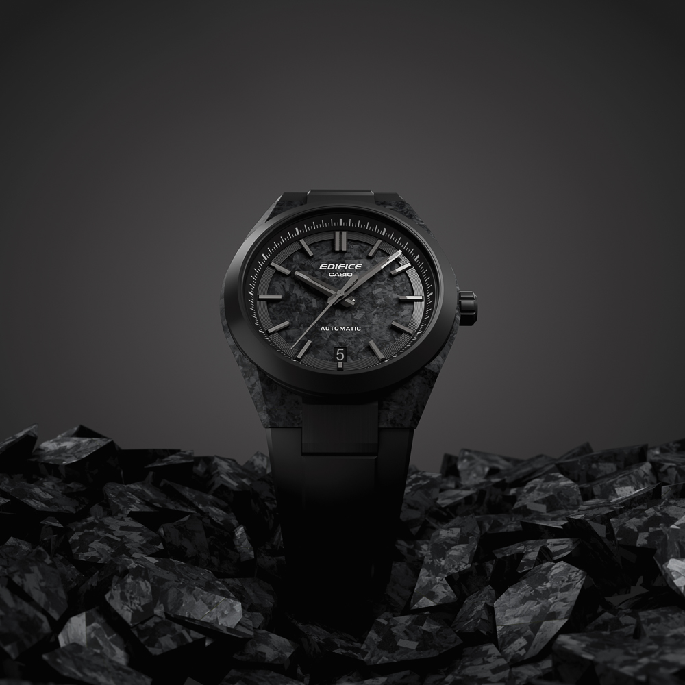 แรงบันดาลใจจากรถสปอร์ตไฮเอนด์ถูกถ่ายทอดผ่าน Forged Carbon วัสดุที่ทั้งเบาและแข็งแรง ตัวเรือนและหน้าปัดแต่ละเรือนมีลวดลายเฉพาะ ไม่ซ้ำกัน ให้ความรู้สึกพรีเมียมและดุดันในแบบ EDIFICE
