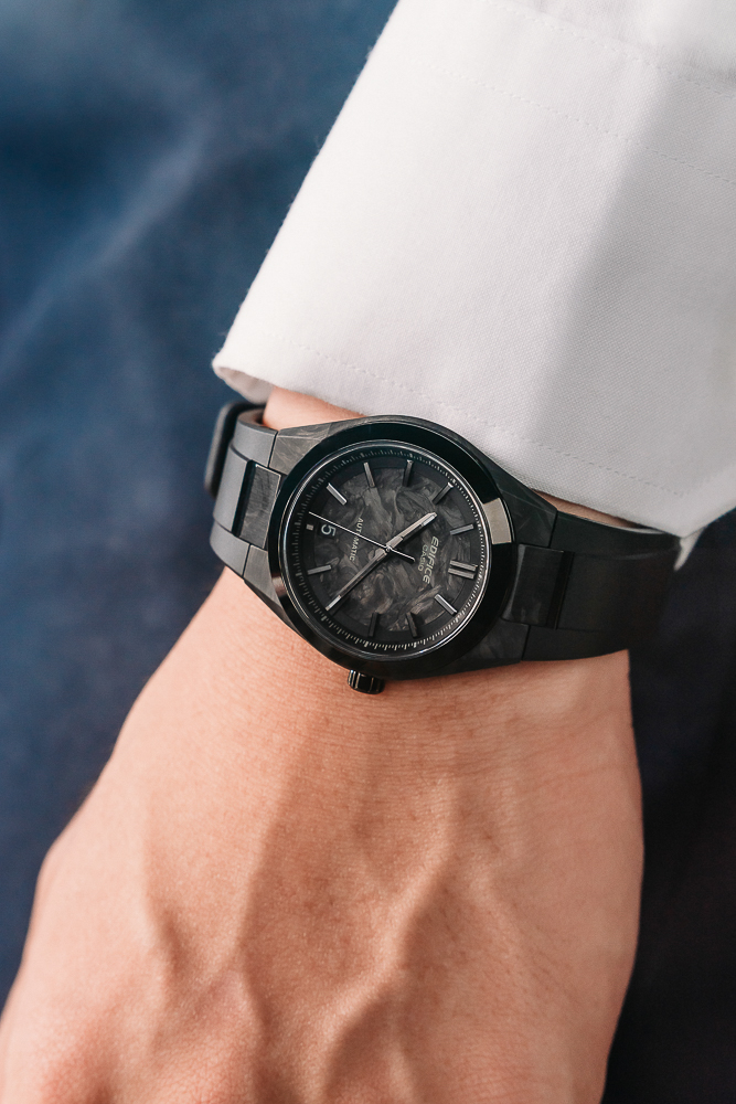 แรงบันดาลใจจากรถสปอร์ตไฮเอนด์ถูกถ่ายทอดผ่าน Forged Carbon วัสดุที่ทั้งเบาและแข็งแรง ตัวเรือนและหน้าปัดแต่ละเรือนมีลวดลายเฉพาะ ไม่ซ้ำกัน ให้ความรู้สึกพรีเมียมและดุดันในแบบ EDIFICE