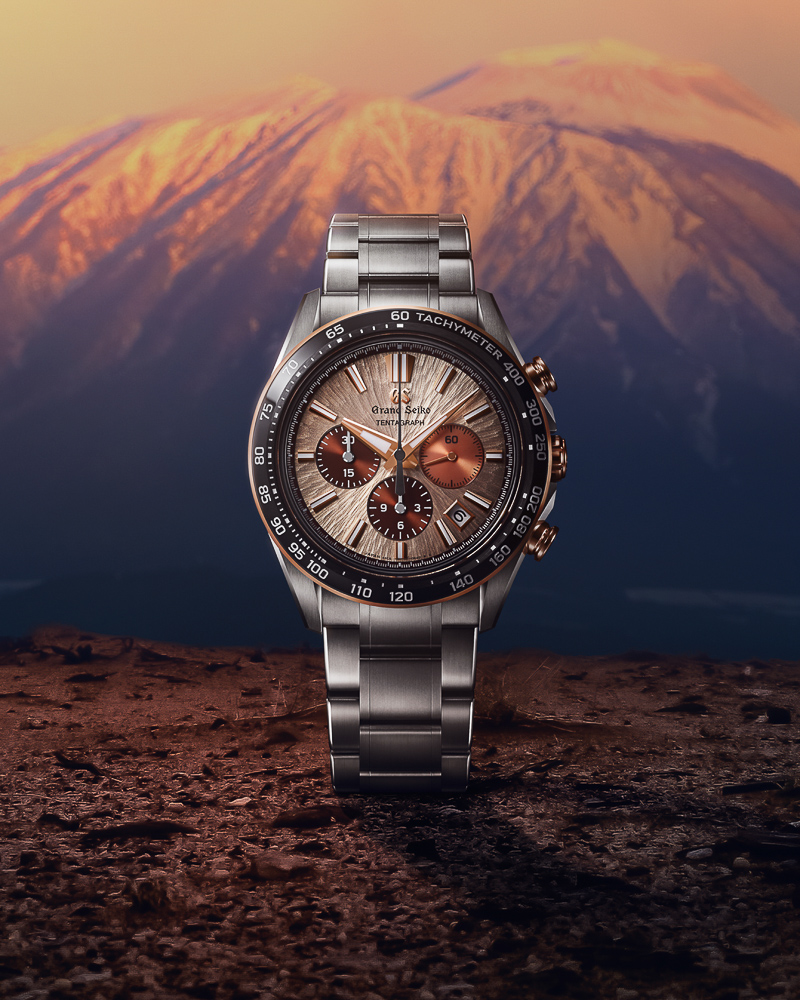 ดีไซน์ของลวดลายบนหน้าปัด ชวนให้นึกถึงทิวทัศน์งดงามของภูเขาอิวาเตะ เมื่อมองจาก Grand Seiko Studio ในเมือง Shizukuishi อันเป็นแหล่งกำเนิดของนาฬิกากลไกทั้งหมดของ Grand Seiko สีทองแดงอมชมพูสุกปลั่ง สะท้อนถึงความยิ่งใหญ่ สง่างาม เสมือนได้โอบรับพลังของแสงแรกยามเช้า
