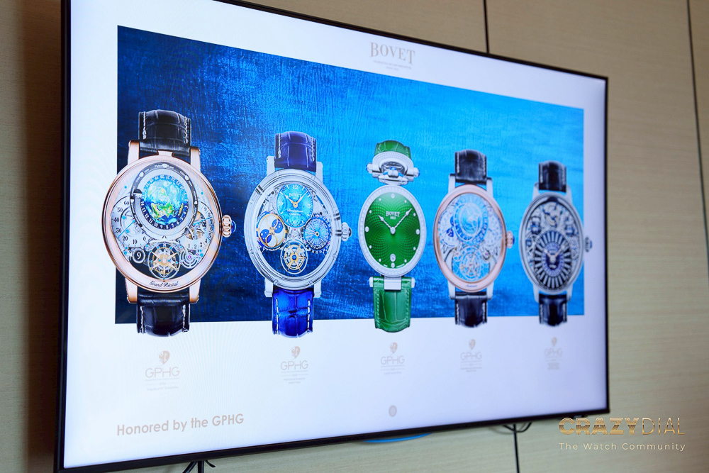 ใน session พิเศษนี้ เราได้สัมผัสกับเรือน Bovet ที่เคยคว้ารางวัลจาก GPHG มาหลายปี ไม่ว่าจะเป็น Récital 22 Grand Récital (Aiguille d’Or 2018), Récital 26 Chapter Two (Mechanical Exception 2020), Miss Audrey Sweet Art (Ladies’ Watch 2020), Récital 20 Astérium (Calendar & Astronomy 2017) และล่าสุดอย่าง Récital 28 Prowess 1 (Mechanical Exception 2024) … แต่ละเรือนเต็มไปด้วยเสน่ห์และรายละเอียดที่ Pascal Raffy ถ่ายทอดให้ฟังด้วยตัวเองอย่างเข้มข้นและอบอุ่น
