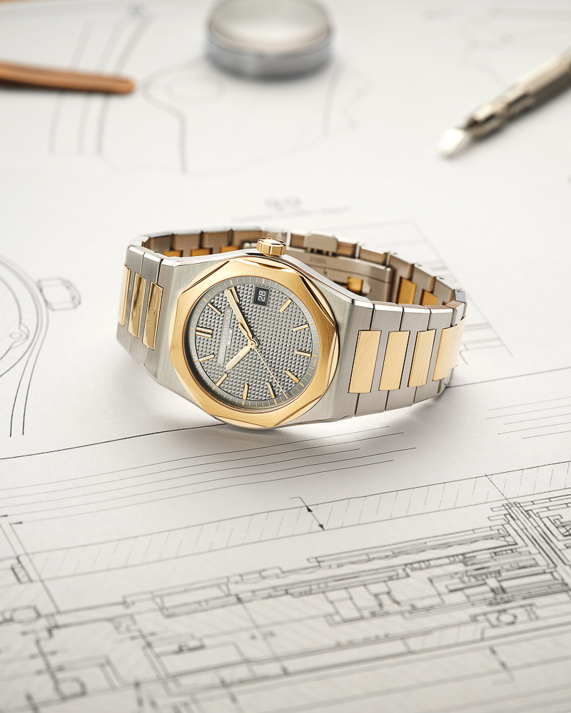 เรือนนี้มาพร้อมตัวเรือนขนาด 39 มม. หนาเพียง 9.8 มม. ผสมผสาน สเตนเลสสตีล กับ เยลโลโกลด์ 3N ได้อย่างกลมกลืน ราวกับพาเราย้อนกลับไปสู่ยุคไบคัลเลอร์ดั้งเดิมของปี 1975 แต่ด้วยเส้นสายที่เฉียบคมและโมเดิร์นกว่าเดิม หน้าปัดสีเทาซันเรย์ลึกแต่งด้วยลาย Clous de Paris และเข็มทอง 3N ที่ส่องประกายภายใต้แสงสลัวราวกับบทเพลงแห่งเวลา