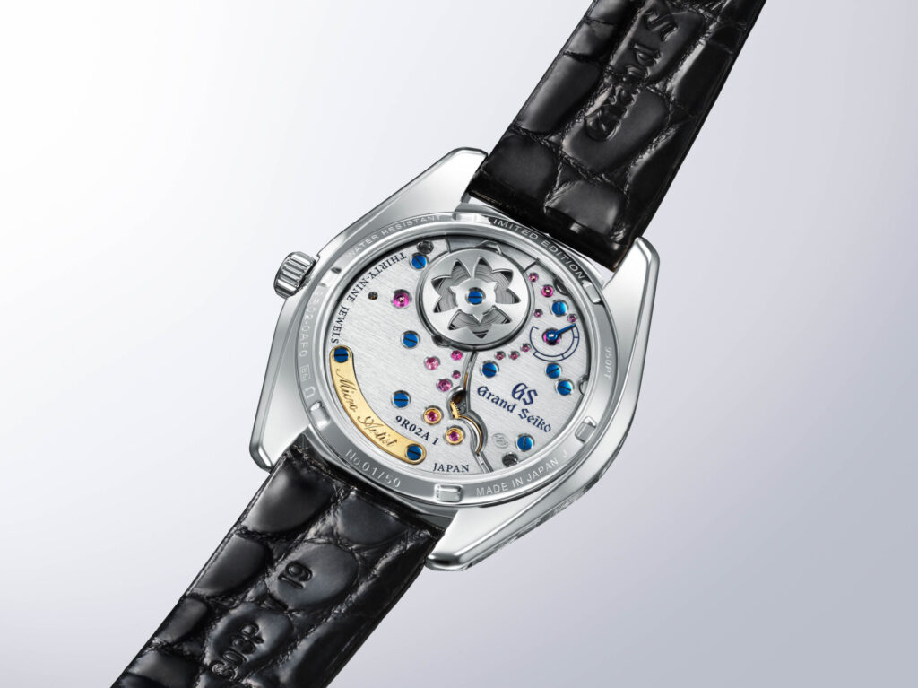 ภายในขับเคลื่อนด้วยกลไกไขลานด้วยมือ Spring Drive ที่ทรงพลังด้วยระบบ Dual-Spring Barrel ร่วมกับ Torque Return System จับคู่มากับสายหนังจระเข้สั่งทำพิเศษจาก KYOTO Leather พร้อมตัวล็อกแพลทินัม 950