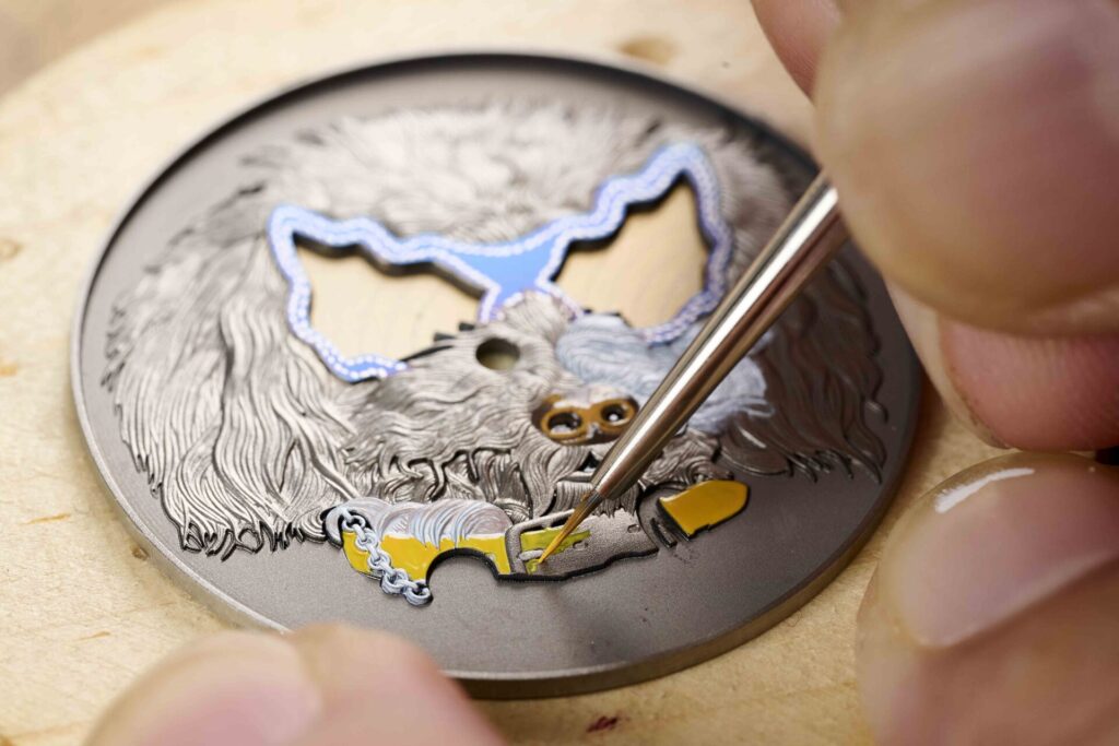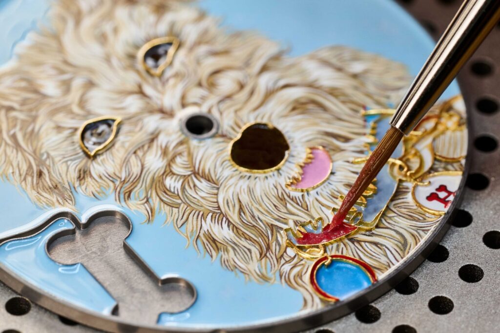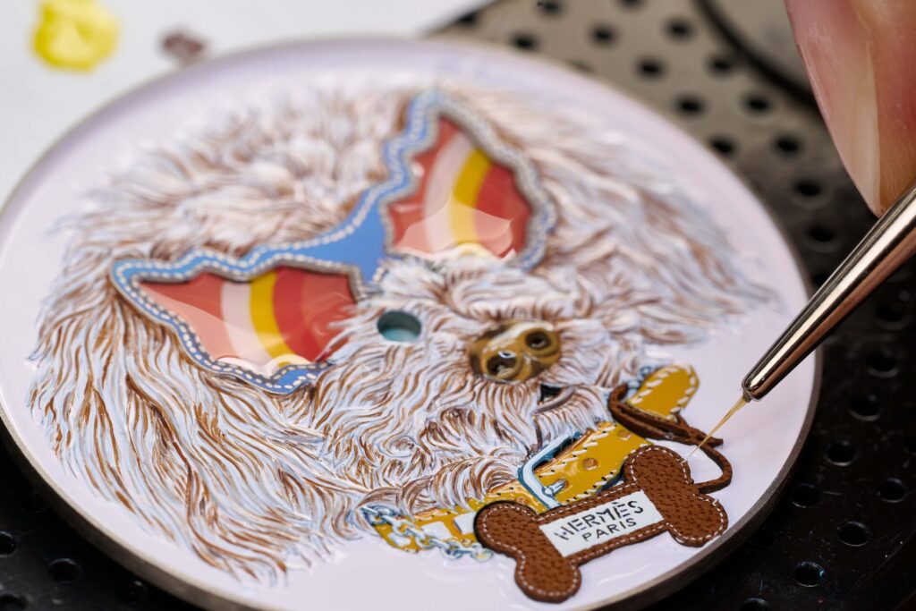 Hermès (@ Hermès ) ถ่ายทอดเสน่ห์ของโลกแห่งสัตว์กับนาฬิกา Arceau Jour de casting ผ่านเหล่าสุนัขแสนซนทั้งสามตัวอย่าง ออร์สัน (Orson), เอมี (Amy) และทาโค (Taco) ผลงานศิลป์ประณีตบนหน้าปัดนาฬิกาไวท์โกลด์ ขนาด 38 มม. ประดับเพชร 71 เม็ด โดยแต่ละรุ่นรังสรรค์ด้วยเทคนิคชั้นสูงแตกต่างกัน ไม่ว่าจะเป็นงานต่อลายไม้แบบภาพจิ๊กซอว์บนตัวออร์สัน งานแกะสลักและวาดภาพด้วยเฉดสีสดสำหรับเอมี หรือเทคนิคลงยาเคลือบแบบคลัวซอนเน (cloisonné) ที่มอบมิติแสงเงาอันละเอียดอ่อนให้กับทาโค ทั้งหมดขับเคลื่อนด้วยกลไกอัตโนมัติ Hermès H1912 และมาพร้อมสายหนังวัว Swift ในโทนสีเฉพาะรุ่น ผลิตแบบจำนวนจำกัดเพียง 12 หรือ 24 เรือน สะท้อนถึงงานหัตถศิลป์ด้านเครื่องหนังอันเป็นเอกลักษณ์ของแอร์เมส