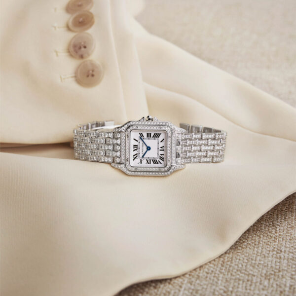 พร้อมทั้งข้อสายซึ่งหยิบเอางานออกแบบของตัวพับล๊อกสายประดับด้วยสตั๊ดสี่ปุ่มแห่งตำนานมาทำหน้าที่มอบความปลอดภัยและสำหรับเปิดแม่กุญแจประดับด้วยเพชร หรือลวดลายเส้นอันสม่าเสมอและประณีต ตัวเรือนของนาฬิกายังล้อมกรอบอย่างสง่างามให้กับหน้าปัดซึ่งทำจากเปลือกหอยมุกสีขาวธรรมชาติในรุ่นโรสโกลด์ และแล็กเกอร์สีขาวเป็นประกายในรุ่นสตีล นาฬิกาประดับอัญมณีนี้ยังประดับด้วยเพชรหนึ่งเม็ดไว้บนหน้าปัด ณ ตำแหน่ง 12 นาฬิกา รับกับเครื่องหมายหรือมาร์กเกอร์บอกชั่วโมงแบบปุ่มนูน ที่สะท้อนถึงงานตกแต่งสุดประณีตบนตัวพับล็อก