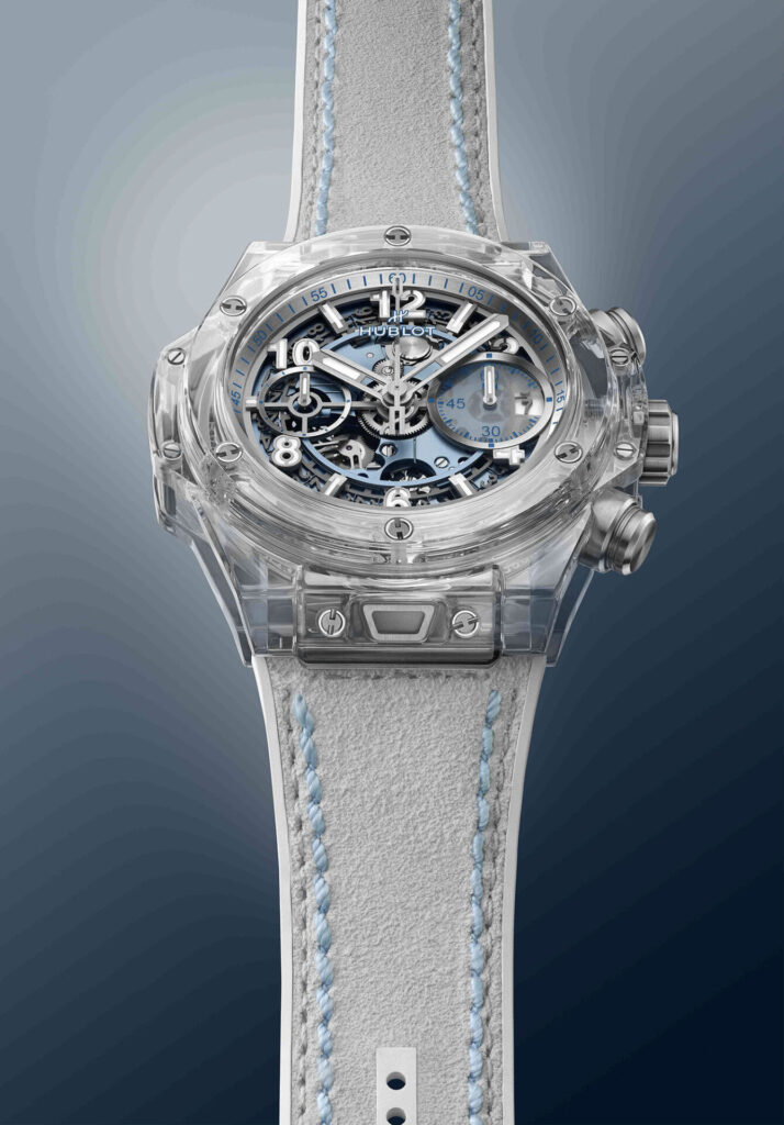 Big Bang Unico Winter Sapphire ผลิตจำนวนจำกัดเพียง 30 เรือน โดดเด่นด้วยความโปร่งใสและประกายระยิบระยับของแซฟไฟร์ ส่วน Big Bang Unico Winter Titanium Ceramic ผลิตจำนวนจำกัด 200 เรือน โดดเด่นด้วยความเบาของไทเทเนียมพร้อมขอบหน้าปัดเซรามิกสีขาว ทั้งสองรุ่นมีขนาดตัวเรือน 42 มม. และมาพร้อมกับระบบ One Click ของ Hublot พร้อมสายหนังลูกวัวบุยางให้เลือก 2 แบบ คือสีขาวสะอาดตาหรือสีฟ้าไอซี่ กลไกศูนย์กลางการทำงานของนาฬิกาทุกเรือนคือกลไก UNICO HUB1280 ซึ่งเป็นกลไกอินเฮาส์รุ่นล่าสุดที่ได้รับการจดทะเบียนสิทธิบัตร 5 ฉบับ ยืนยันถึงการผสมผสานวัสดุล้ำสมัยเข้ากับนวัตกรรมอันเป็นเอกลักษณ์และจดสิทธิบัตรโดย Hublot อย่างแท้จริง