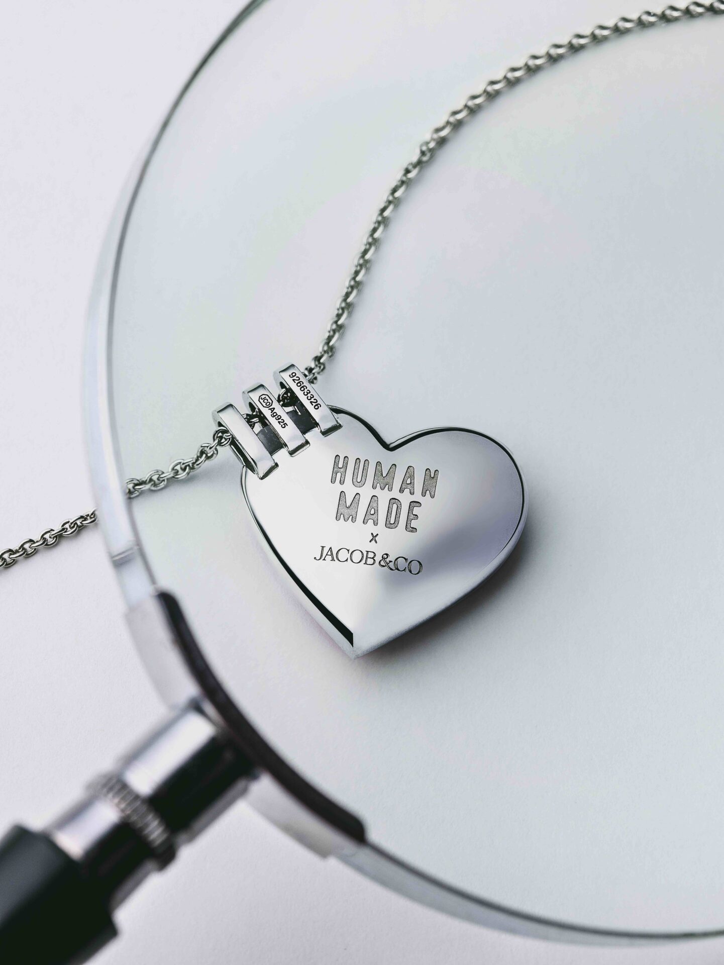 โปรเจกต์นี้เปิดตัวภายใต้การประมูล Objects of Brilliance: From the Collection of Pharrell Williams and Jacob Arabo บนแพลตฟอร์ม JOOPITER โดยตัวเพนแดนต์หยิบเอาไอคอนรูปหัวใจของ HUMAN MADE มาตีความใหม่ผ่านงานฝีมือในแบบฉบับ Jacob & Co. ให้กลายเป็น wearable collectible ที่ทั้งโดดเด่นและสวมใส่ได้จริงในชีวิตประจำวัน