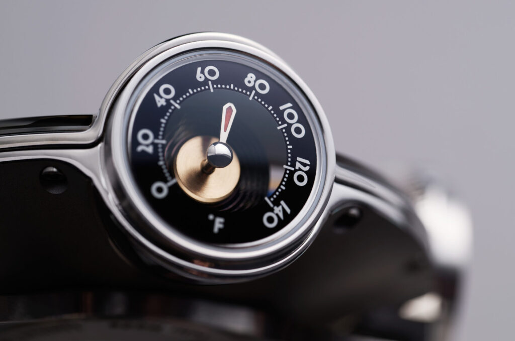 4 ห้อง 4 ฟังก์ชัน: แสดงเวลา, พลังงานสำรอง, วัดอุณหภูมิ และโมดูลตั้งเวลา ล้อมรอบ Flying Tourbillon ตรงกลาง