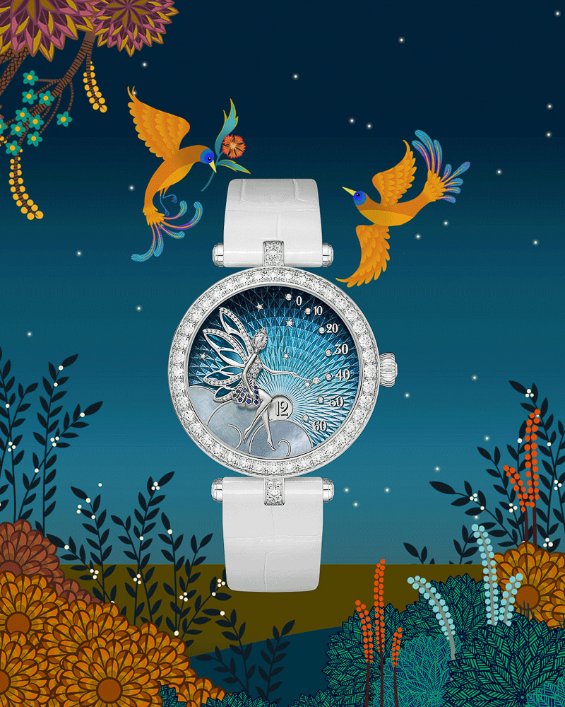 Van Cleef & Arpels ร่วมเฉลิมฉลองเทศกาลไหว้พระจันทร์ผ่านผลงานเครื่องประดับ และเรือนเวลาที่ถ่ายทอดความงดงามเหนือกาลเวลา เริ่มจากโมทิฟดอกเบญจมาศ Fleurette ที่ประกอบขึ้นจากเพชรเจียระไนกลมเจ็ดเม็ด เรียงร้อยอย่างประณีตดุจกลีบดอกไม้โอบล้อมเกสรอันเจิดจรัส ตามด้วยแหวนจากคอลเลกชัน Icône Solitaire ไปจนถึงผลงานสร้างสรรค์อันเต็มไปด้วยเสน่ห์ชวนฝันกับนาฬิกาข้อมือ “นางฟ้าบอกเวลา” รุ่นทองคำสีกุหลาบ Lady Féerie Or Rose และเรือนเวลา Lady Féerie ประดับไพลินบนหน้าปัด ผลงานเหล่านี้ร่วมเติมเต็มค่ำคืนแห่งการเฉลิมฉลองวันไหว้พระจันทร์ด้วยความงดงามเหนือกาลเวลาและเรื่องราวอันเปี่ยมด้วยความหมาย