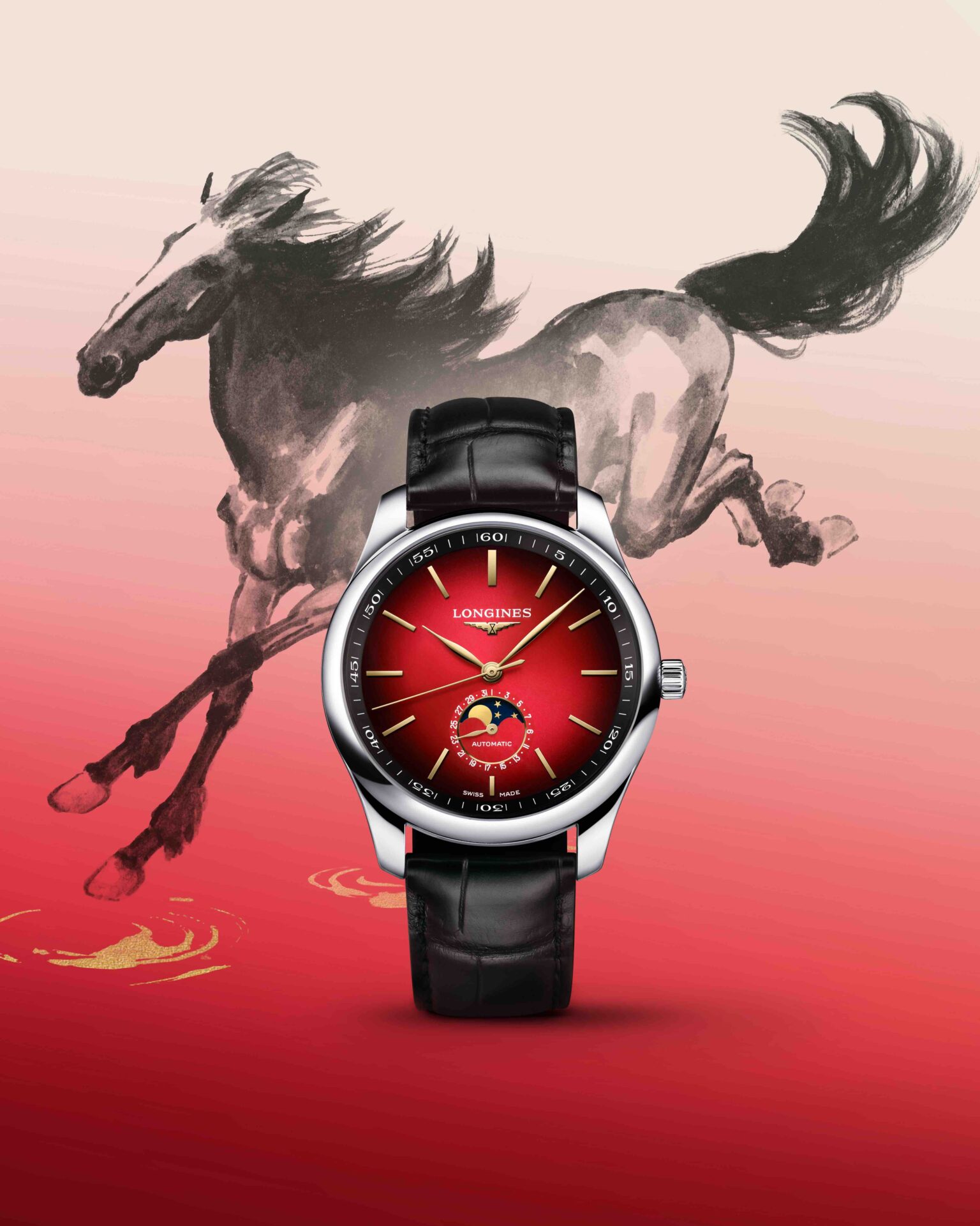 LONGINES MASTER COLLECTION YEAR OF THE HORSE รับปีม้า 2026 ด้วยหน้าปัดแดงไล่เฉดและ ‘โรเตอร์ทองคำ’ สลักลายม้าควบระดับตำนาน! (Limited 2,026 เรือน) 14 มกราคม 2026