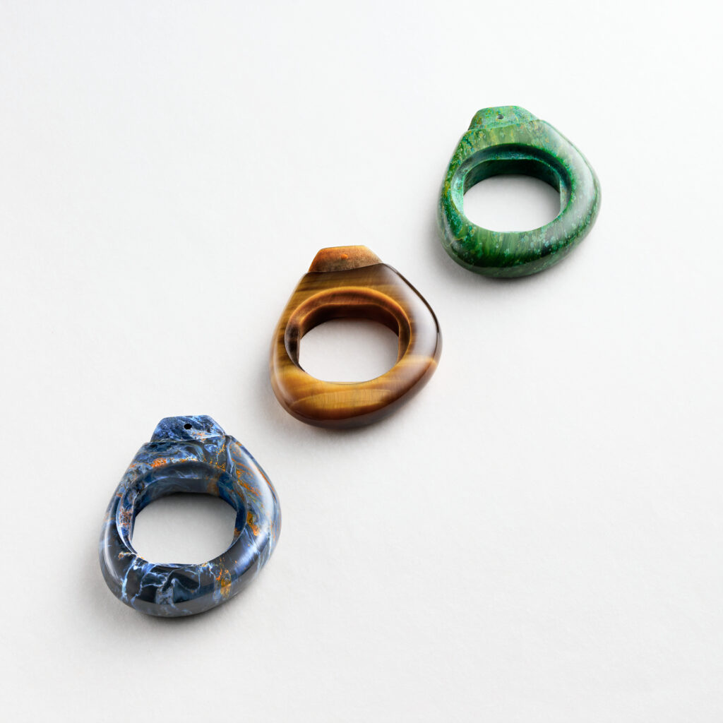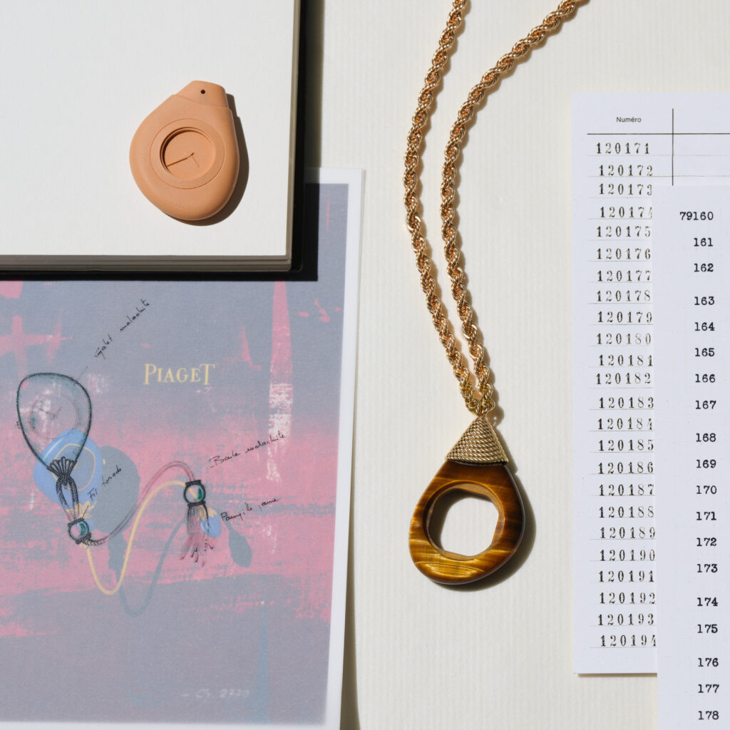 เมซง Piaget เปิดศักราชด้วยผลงานสร้างสรรค์ อย่าง Swinging Sautoirs เจเนอเรชั่นใหม่ภายใต้ชื่อ “Swinging Pebbles” ที่ได้รับการแกะสลักจากหินล้ำค่าสามชนิดได้แก่ ไทเกอร์อาย, เวอร์ไดต์ และ ปีเตอร์ไซต์