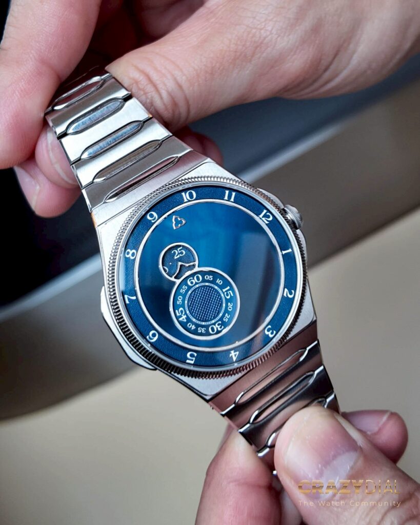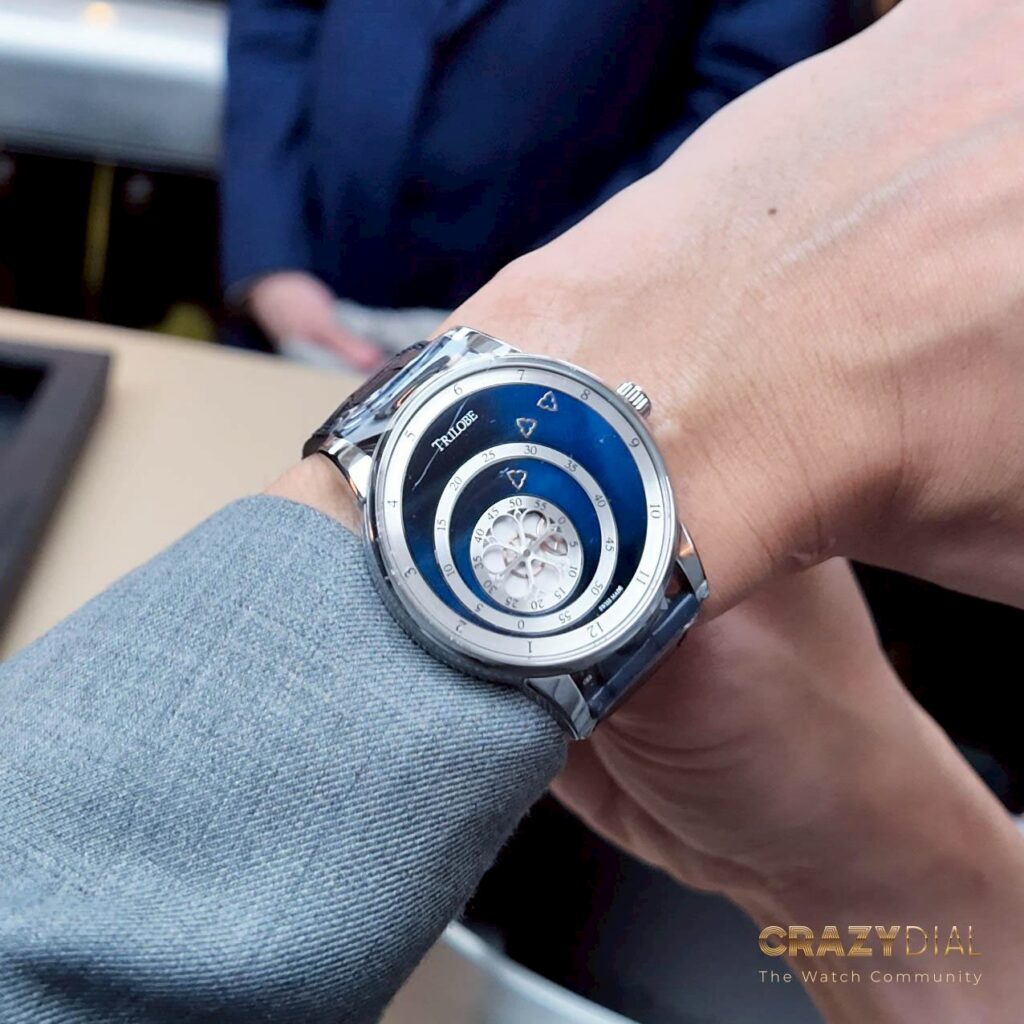 Trilobe เป็นแบรนด์ที่เกิดจากแนวคิด “Architecture in Motion” — สถาปัตยกรรมที่เคลื่อนไหวได้ แทนที่จะใช้ “เข็ม” บอกเวลาแบบเดิม Gautier เลือกใช้ จานหมุนสามวง สำหรับ ชั่วโมง นาที และ วินาที หมุนไปในจังหวะของตัวเองอย่างมีชีวิต และนั่นคือที่มาของชื่อ Trilobe ซึ่งหมายถึง “สามกลีบ” — สัญลักษณ์แห่งโครงสร้างเวลาที่เปลี่ยนทิศทางได้เสมอ