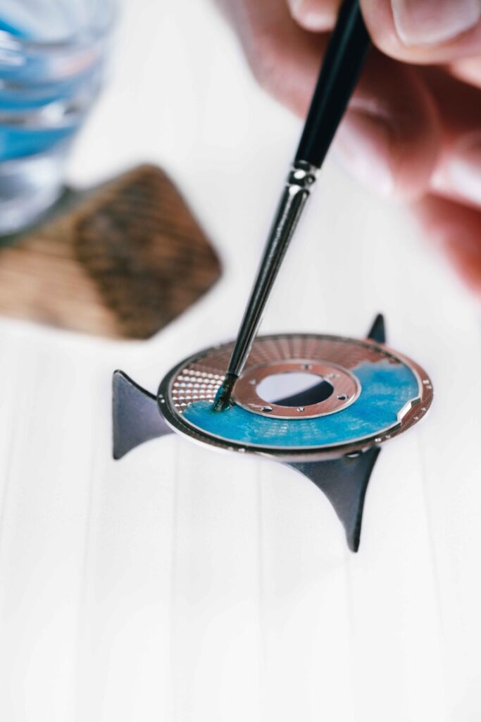ความพิเศษของ Freak S ENAMEL อยู่ที่การผสมผสาน High Tech Engine เข้ากับ High Artistry Masterpiece ด้วยการนำงานฝีมือดั้งเดิมอย่างการเคลือบลงยา (Enamel) ซึ่งเป็นศิลปะชั้นสูง และมีรากฐานยาวนาน มารังสรรค์บนดิสก์บอกชั่วโมงเคลือบอีนาเมลสลักลาย Guilloché-Flinqué สร้างสรรค์ด้วยมือ ณ เวิร์กช็อป Donzé Cadrans ซึ่งเป็นผู้เชี่ยวชาญการเคลือบลงยาในเครือ โดยดิสก์ลงยาในสีฟ้าเทอร์ควอยซ์และแดงทับทิมนี้ ไม่ได้เป็นเพียงองค์ประกอบตกแต่ง แต่เป็นชิ้นส่วนกลไกที่เคลื่อนไหวอย่างต่อเนื่อง ซึ่งต้องอาศัยความเชี่ยวชาญและความแม่นยำสูงในการผลิตเพื่อให้กลไกทำงานได้อย่างสมดุล Freak S ยังเป็นนาฬิกาอัตโนมัติเรือนแรกของโลกที่มาพร้อม double oscillator ทำงานด้วยออสซิลเลเตอร์ขนาดใหญ่พิเศษสองตัวที่เอียงทำมุม 20 องศา และชุดเอสเคปเมนท์เคลือบด้วย DIAMonSIL เทคโนโลยีเฉพาะของ Ulysse Nardin ที่เพิ่มความทนทานและความแม่นยำ รวมถึงการใช้ซิลิคอนในชิ้นส่วนกลไกที่ Ulysse Nardin เป็นผู้บุกเบิกตั้งแต่ปี 2001 ซึ่งตอกย้ำถึงตำแหน่งผู้นำด้านเทคโนโลยีซิลิคอน ในวงการนาฬิกาชั้นสูง โดยนาฬิการุ่นนี้ถือเป็นผลงานที่กำหนดมาตรฐานใหม่ที่ผสานวิศวกรรมล้ำสมัยเข้ากับงานศิลปะชั้นยอดได้อย่างลงตัว