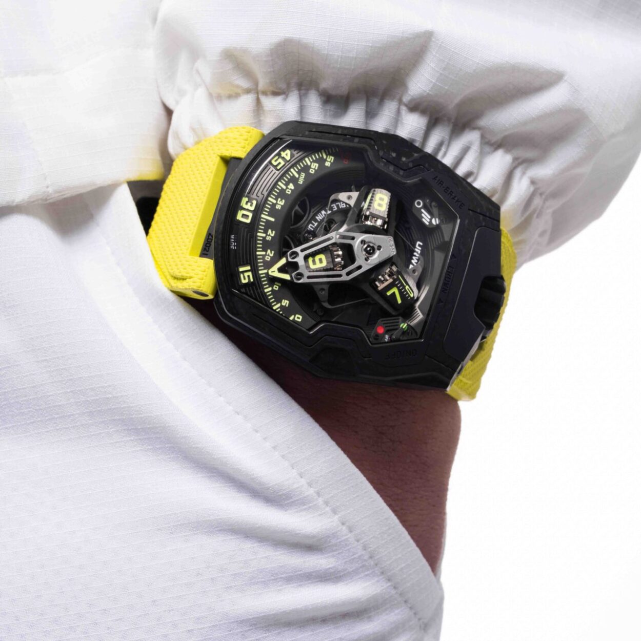 กลไกที่ใช้ในรุ่น UR-230 ‘Black Star’ คือ คาลิเบอร์ UR-7.30 ซึ่งถูกบรรจุอยู่ภายในโครงไทเทเนียมแบบปิดผนึกแน่นหนาทำหน้าที่เสมือน ตู้นิรภัยเชิงกลและปกป้องด้วยตัวเรือนคอมโพสิตเซรามิกและฝาหลังไทเทเนียมเคลือบ DLC สีดำ โดยกลไกนี้มาพร้อมกับคอมพลิเคชั่นอันเป็นดีเอ็นเอของ URWERK คือ แซทเทิลไลต์ แสดงเวลาแบบ wandering hours และเข็มเรโทรเกรดแบบสามมิติ ที่คอยนำทางบล็อกแสดงชั่วโมงไปตามสเกลนาทีและตีตัวกลับไปที่ศูนย์อย่างรวดเร็วเมื่อครบ 60 นาที นอกจากนี้ UR-230 ยังเป็นนาฬิกากลไกอัตโนมัติที่ควบคุมการทำงานด้วยระบบใบพัดทรงกังหันคู่ที่พัฒนาขึ้นเฉพาะ โดยใบพัดหนึ่งทำหน้าที่ดูดซับแรงกระแทกจากภายนอก ส่วนอีกใบทำหน้าที่ควบคุมการไหลเวียนของอากาศในกลไกขึ้นลานอัตโนมัติ เสมือนเบรกอากาศพลศาสตร์ ซึ่งผู้สวมใส่สามารถปรับระดับการทำงานของโรเตอร์ หรือปิดการทำงานเพื่อสลับไปใช้โหมดไขลานด้วยมือ ได้ผ่านตัวควบคุมบริเวณฝาหลัง ซึ่งสถานะจะแสดงบนมาตรแสดงสองตำแหน่งอย่างสมมาตรที่ 11 นาฬิกาและ 1 นาฬิกา
