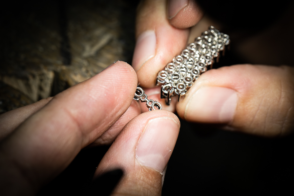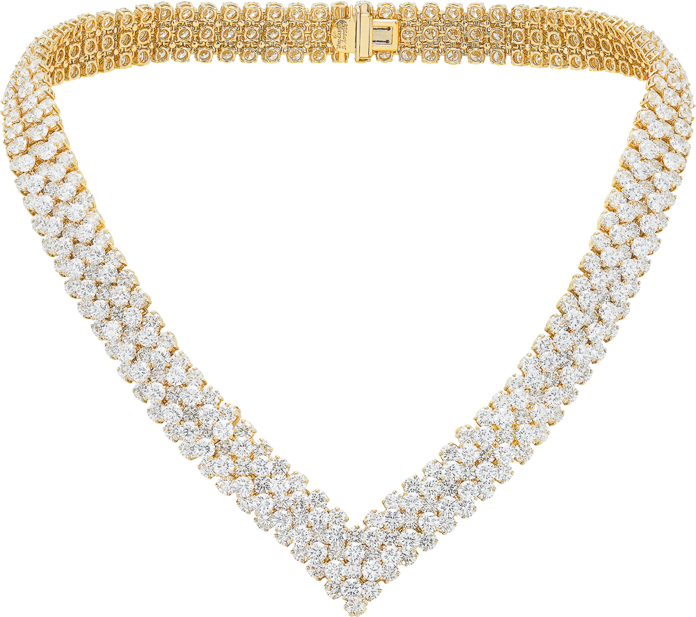 ย้อนกลับไปในปี 1981 คอลเลกชัน À Cheval หรือ “เหลี่ยมหลังม้า” ได้ถือกำเนิดขึ้นเพื่อตอกย้ำความบริสุทธิ์และประกายสุกสว่างของเพชร ผ่านเทคนิคการฝังอัญมณีอันวิจิตรที่จัดเรียงซ้อนเป็นชั้นเสมือนขั้นบันได ให้เพชรแต่ละเม็ดเปล่งประกายดุจประติมากรรมนูนต่ำ สะท้อนแสงละมุนจากทุกมุมมอง ขณะเดียวกันโครงสร้างที่ซับซ้อนยังมอบความยืดหยุ่นแนบเนียนไปกับเรือนร่างอย่างเป็นธรรมชาติ บางผลงานยังสอดแทรกความคิดสร้างสรรค์ที่สามารถพลิกแพลงการสวมใส่ได้หลากหลาย ไม่ว่าจะเป็นสร้อยคอที่แยกออกเป็นสร้อยข้อมือสองเส้น หรือจี้และต่างหูที่สามารถปรับเปลี่ยนเป็นเข็มกลัดได้อย่างงดงาม ถ่ายทอดจิตวิญญาณแห่งนวัตกรรมและงานหัตถศิลป์อันเป็นเอกลักษณ์ของเมซง
