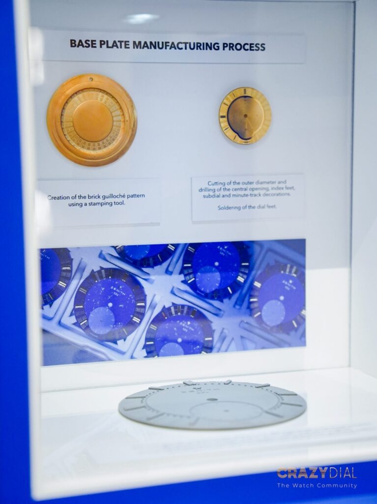 ก้าวแรกที่เดินเข้าไปในบูธ เราจะสัมผัสได้ถึงกลิ่นอายของประวัติศาสตร์ทันที เพราะ Zenith ตั้งใจออกแบบบูธให้สะท้อนสถาปัตยกรรมของอาคารโรงงาน (Manufacture) ที่ Le Locle บรรยากาศด้านในคึกคักมาก มีช่างทำนาฬิกาตัวจริงเสียงจริงมานั่งสาธิตการประกอบชิ้นส่วนให้เราดูแบบใกล้ชิดติดโต๊ะ แต่ที่เก๋และล้ำสุดๆ ต้องยกให้ไอเดียการเชื่อมต่อกล้องวงจรปิด (CCTV) ถ่ายทอดสดภาพบรรยากาศจากห้องผลิตในโรงงานมาให้คนในงานที่เจนีวาได้เห็นกันแบบเรียลไทม์ ทำให้เรารู้สึกเหมือนได้ไปเดินอยู่ในโรงงานจริงๆ ครับ