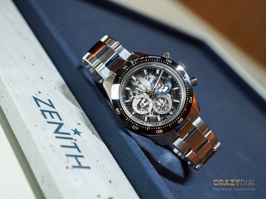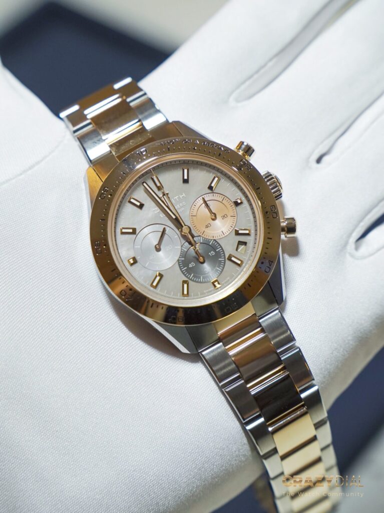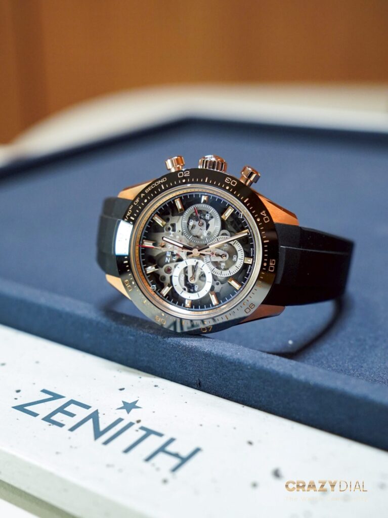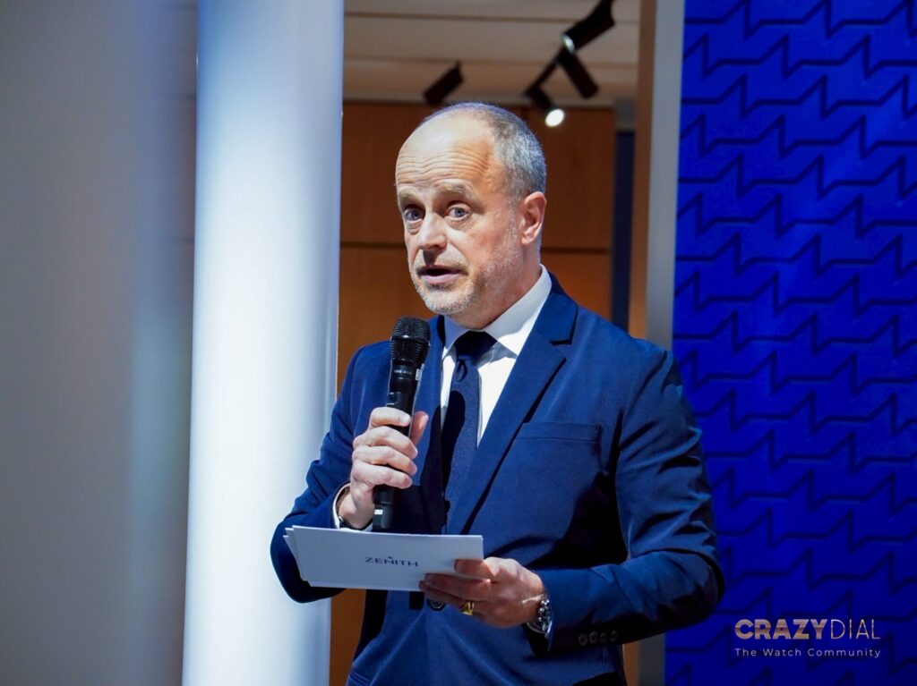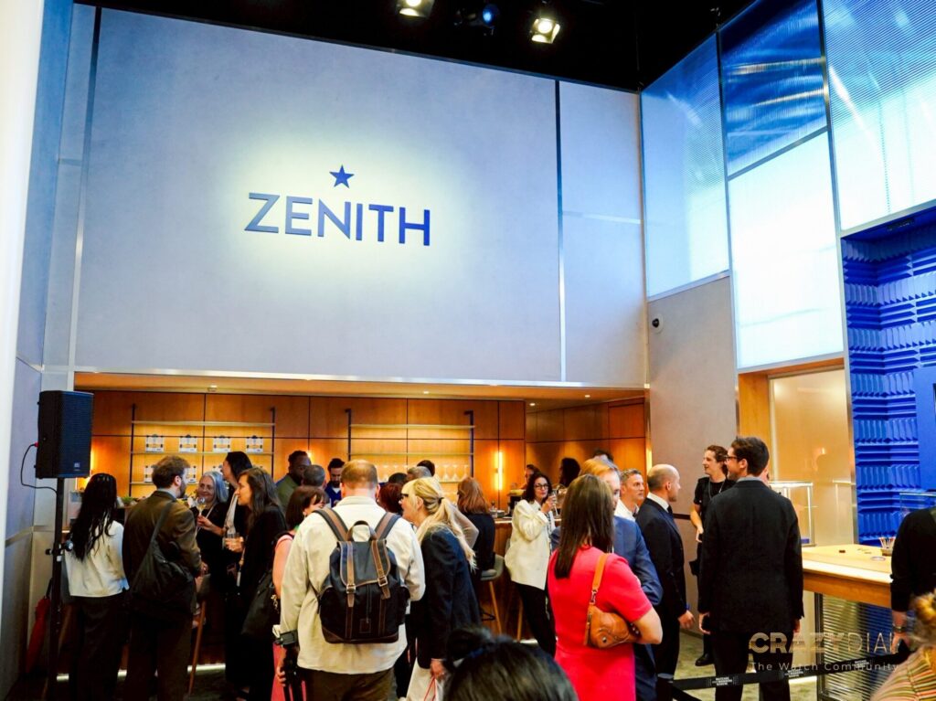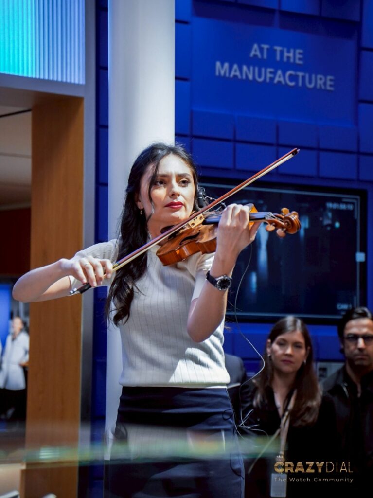 ในช่วงเย็นของวันแรกความพิเศษไม่แพ้กันครับ งานเริ่มด้วยการกล่าวต้อนรับสั้นๆ จากคุณ Benoit de Clerck, CEO ของแบรนด์ ก่อนจะส่งไม้ต่อให้กับการแสดงสุดเอ็กซ์คลูซีฟจากนักไวโอลินหญิงระดับโลก Esther Abrami (เอสเธอร์ อบรามี) ศิลปินคลาสสิกยุคใหม่ที่โด่งดังมากและเป็นหนึ่งในแบรนด์แอมบาสเดอร์หญิงภายใต้แคมเปญ “Dreamhers” ของ Zenith นั่นเอง เสียงไวโอลินของเธอเข้ากับความคลาสสิกของบูธได้อย่างสมบูรณ์แบบจริงๆ